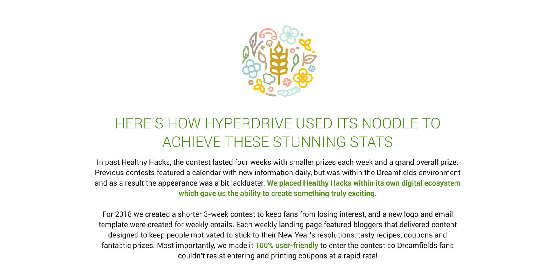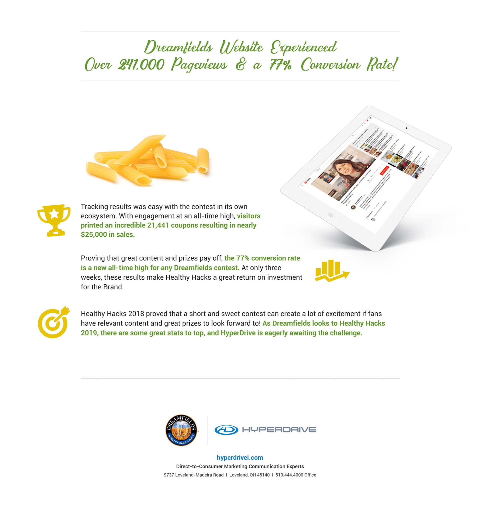 Provide our fans and followers with helpful tips, recipes, and inspiration to live a healthier balanced life in 2018 with the Third Annual Dreamfields #HealthyHacks program.