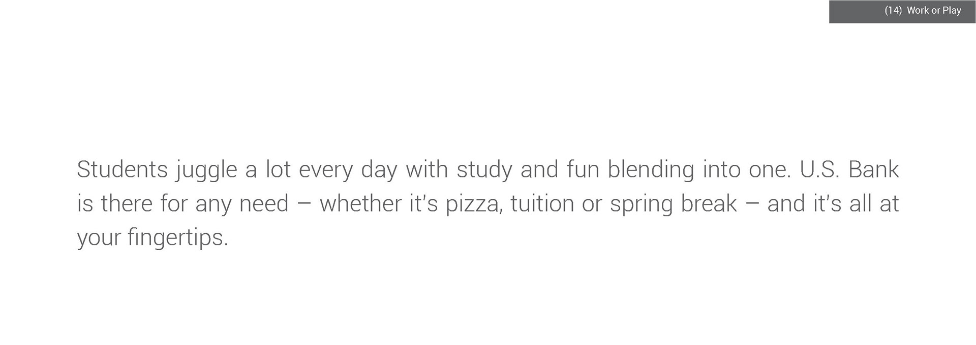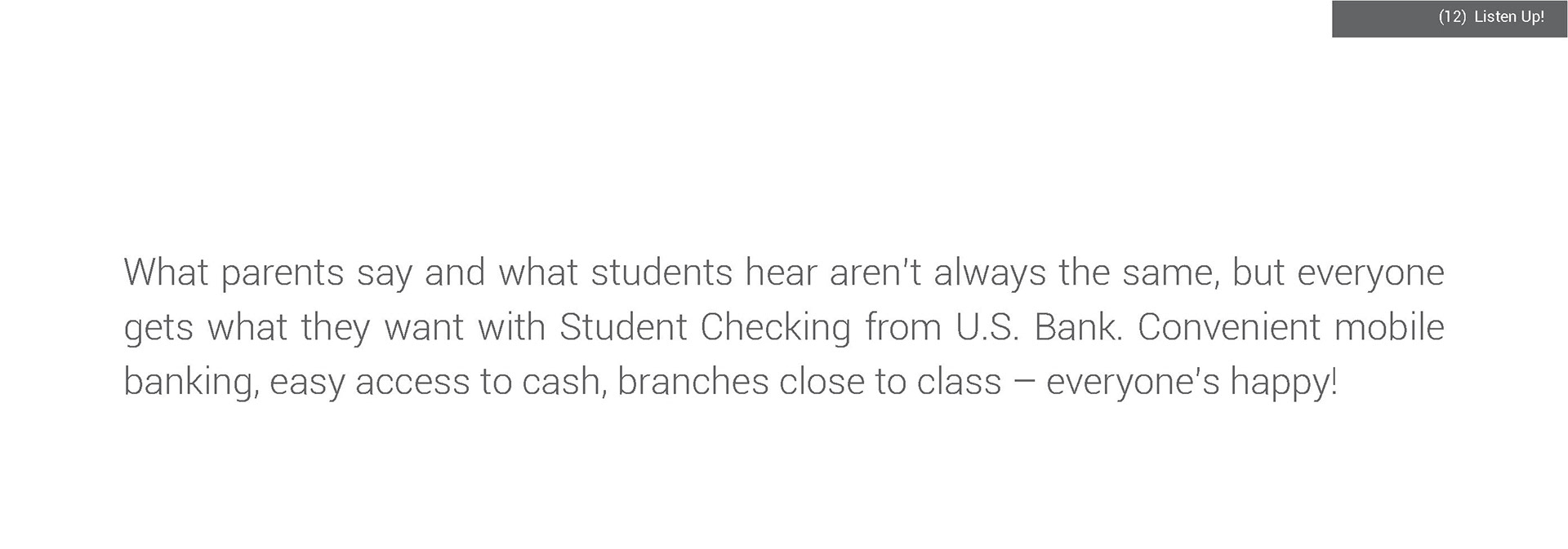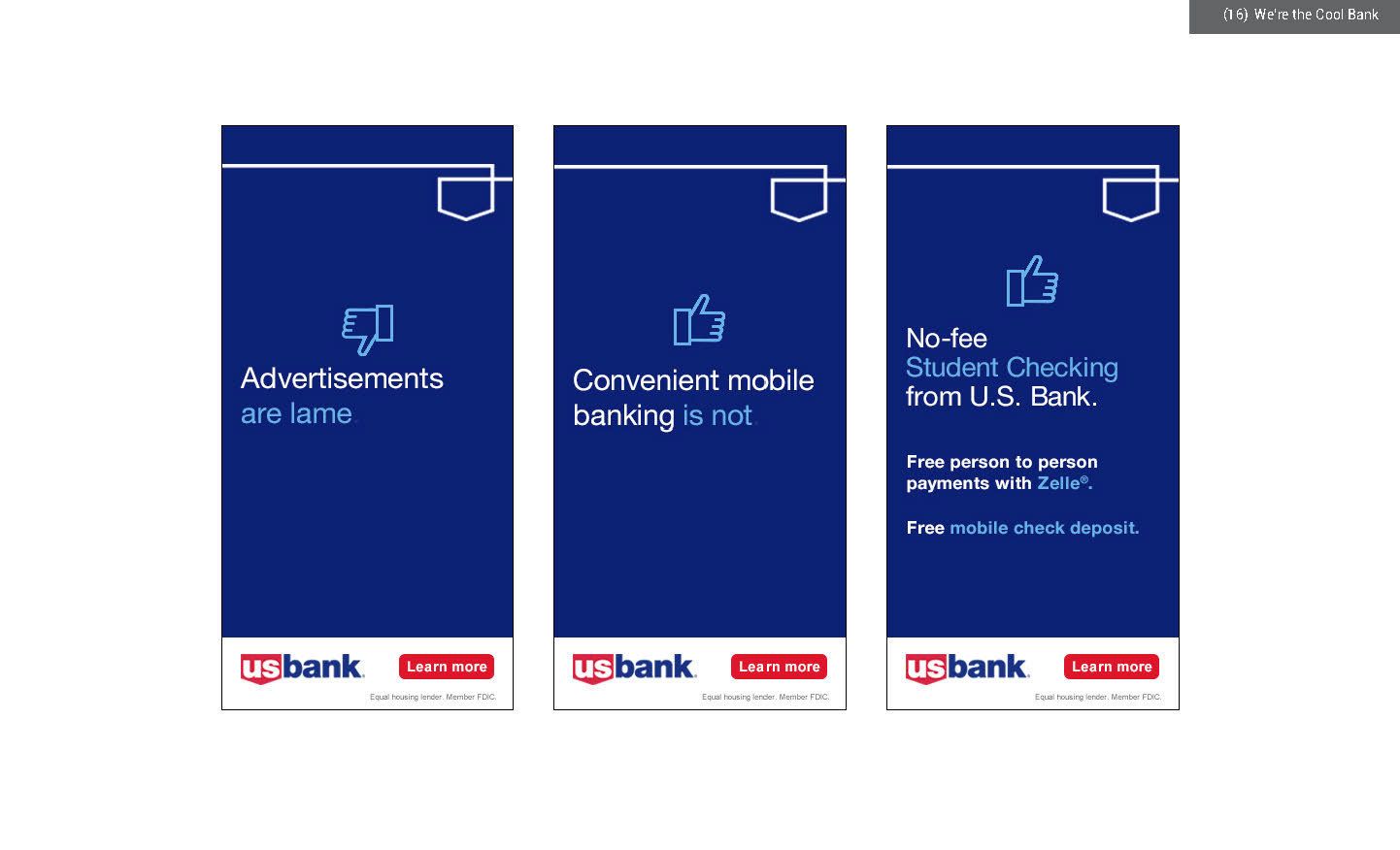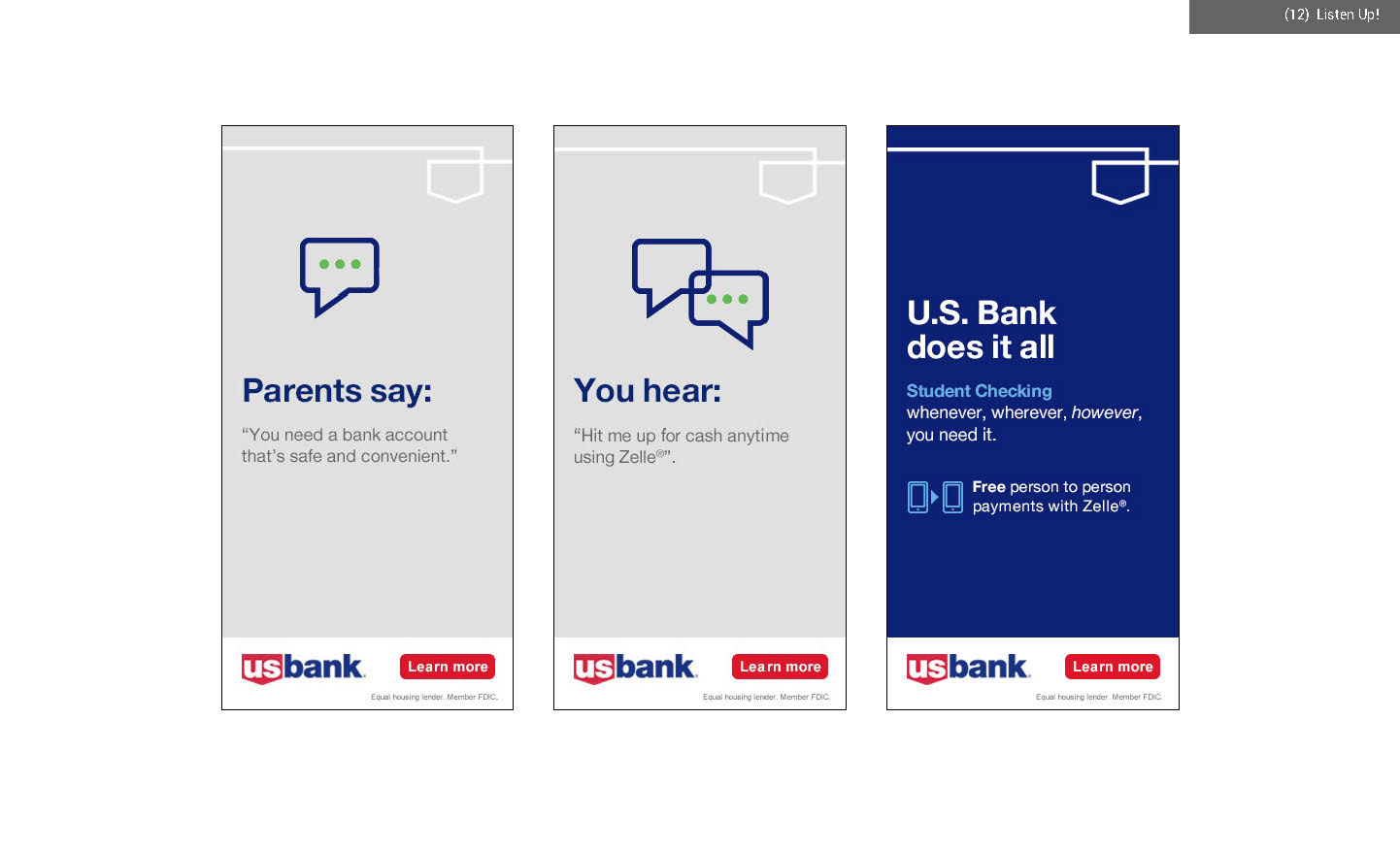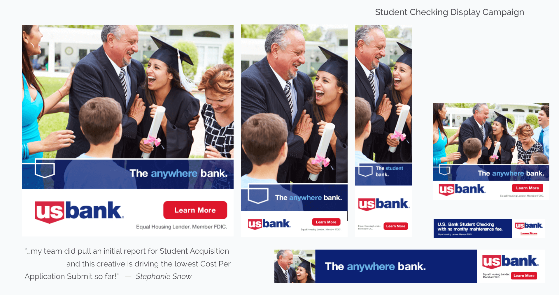 Additional Concepts for other U.S. Bank Digital Display Projects, from Mortgage and HELOC to Loan Portals, Student and Consumer Checking... deliverables always included: concepts / design / production of HTML5 ads ready for trafficking using Google AdWords and/or Double Click.